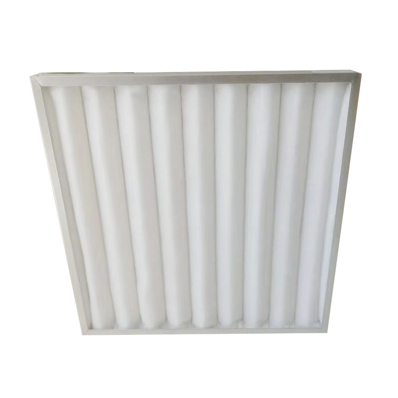 從主要用于首道過濾器考慮,應(yīng)該截留大微粒,主要是5μm以上的懸浮性微粒和10μm以上的沉降性微粒及各種異物,防止其進(jìn)入系統(tǒng),所以粗效過濾器的效率以過濾5μm為準(zhǔn),過濾效率可達(dá)20%~80%。粗效過濾器用于防止中、高效過濾器被大粒子堵塞,以延長中、高效過濾器的壽命,通常設(shè)在上風(fēng)側(cè)作新風(fēng)過濾。粗效過濾器的濾材一般由滌綸無紡布(氈)、玻璃纖維、人造纖維、金屬絲網(wǎng)及粗、中孔泡沫塑料等制作。外框主要有紙框、鍍鋅框、鋁合金框、不銹鋼框。制作方法大多為折疊成型。
