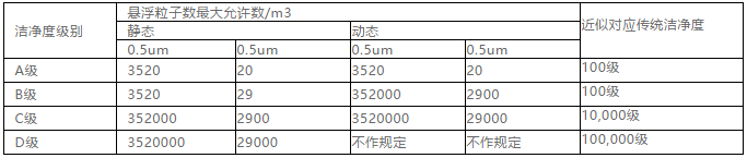 中國(guó)GMP(2010年修訂)新版GMP附錄1 無(wú)菌藥品.第三章.第九條……潔凈區(qū)各級(jí)別空氣懸浮粒子的標(biāo)準(zhǔn)規(guī)定如下