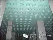 為了滿足防微震、空氣循環(huán)的需要和防治塵埃粒子附著,有潔凈度要求的電子芯片廠房一般采用華夫樓板(Chess Slab),華夫樓板由華夫模板和鋼筋混凝土組成的鋼混結(jié)構(gòu)。華夫模板(FRP ,環(huán)氧玻璃鋼)是一種新型的復(fù)合材料,混凝土澆筑后與剛度大的密肋交叉梁系和鋼筋混凝土剪力墻一起組成樓層結(jié)構(gòu)防微震系統(tǒng),底模一般不拆除,做為永久性模板同時(shí)取代了潔凈要求的頂棚環(huán)氧涂料,如右圖。以滿足電子廠房的潔凈度要求。本文結(jié)合中芯國際FAB15芯片生產(chǎn)廠房工程華夫板施工的實(shí)例來介紹下華夫板施工工藝和注意事項(xiàng)。