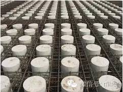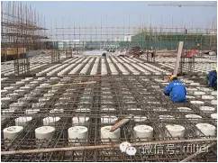 養(yǎng)護(hù):本工程華夫樓板雖然板厚500mm~600mm,但因?yàn)閳A筒均勻滿布有利于內(nèi)部散熱,故不作超厚混凝土水化熱控制;在壓光完成混凝土表面可以上人后(4~6h),對華夫樓板濕水并覆蓋一層薄膜,進(jìn)行施水保濕養(yǎng)護(hù)。