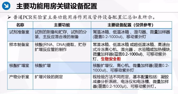 2、標本制備區(qū)儀器設(shè)備主要有生物安全柜、加樣器、離心機、溫育儀、混勻器等;