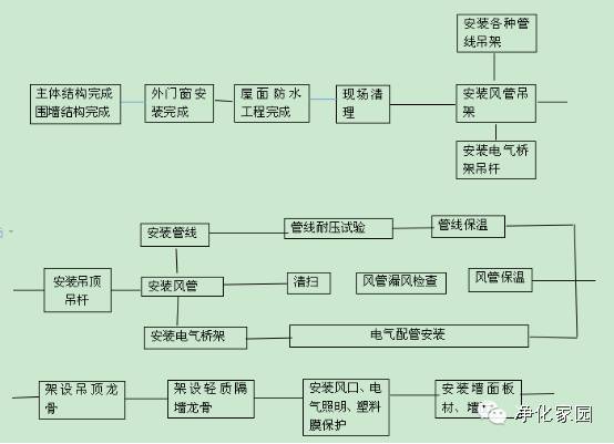 為了保證凈化系統(tǒng)的“干凈”,合理的施工順序具有重要意義,所以規(guī)定“應(yīng)根據(jù)‘潔凈室主要施工程序’制訂協(xié)作進(jìn)度計(jì)劃,嚴(yán)格