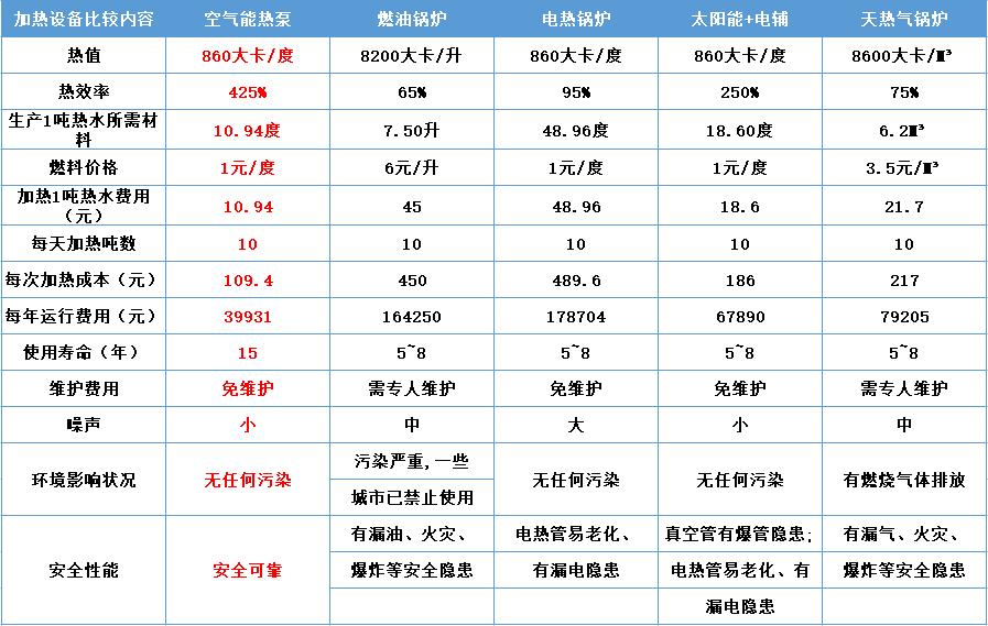 空氣能熱泵與傳統(tǒng)熱水設(shè)備運行費用的對比分析: