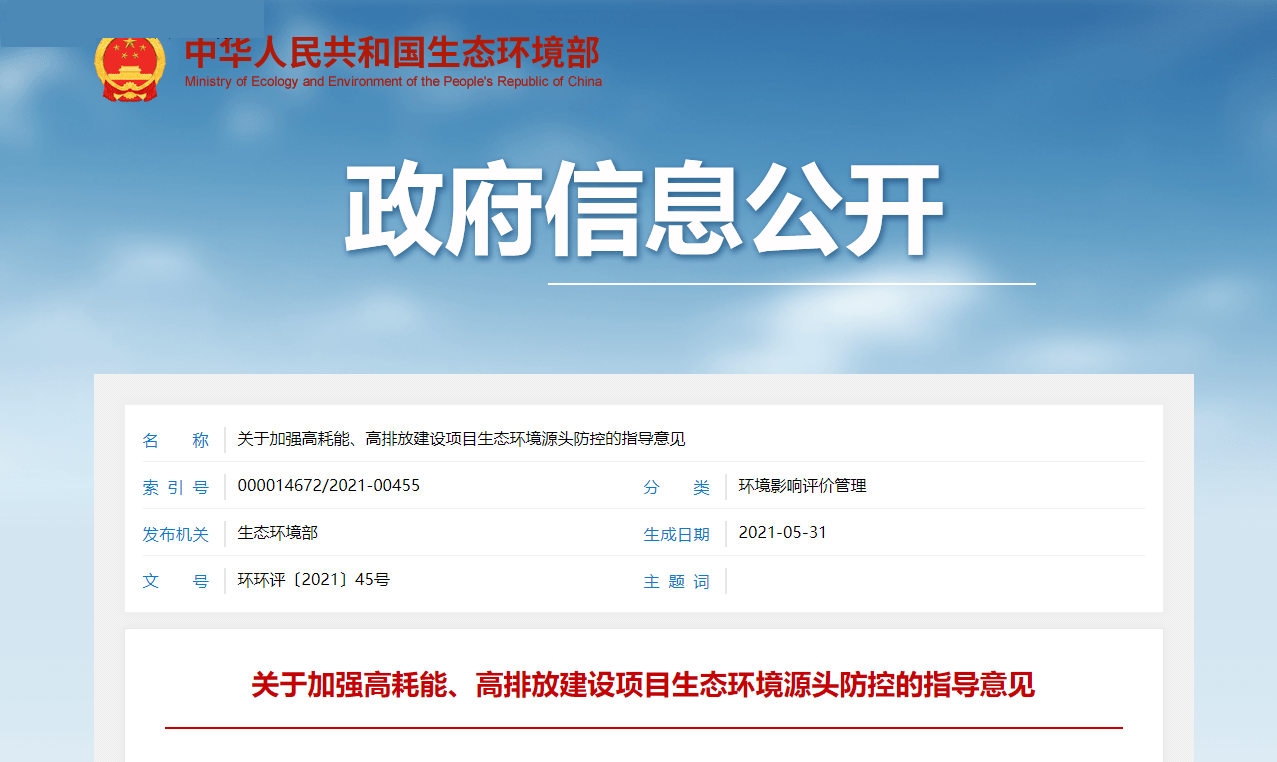 今年5月31日,我國生態(tài)環(huán)境部印發(fā)《關(guān)于加強(qiáng)高耗能、高排放建設(shè)項(xiàng)目生態(tài)環(huán)境源頭防控的指導(dǎo)意見》,其中第7條明確指出:將碳排放影響評價(jià)納入環(huán)境影響評價(jià)體系。