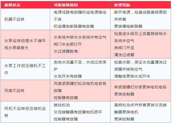 維修人員在處理問題時(shí),可參照下表排除故障: