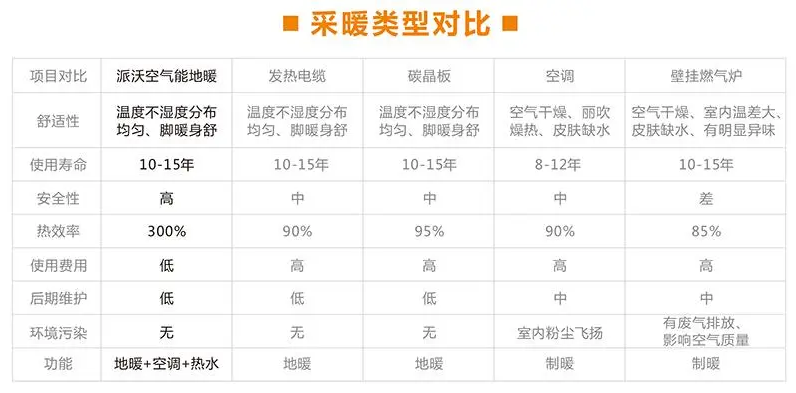 通過以上因素不難看出,空氣能熱泵產(chǎn)品的品質(zhì)、用途和價格是成正比的。雖然設(shè)備價格高于空調(diào)制冷和燃?xì)獗趻鞝t采暖,但是產(chǎn)品用途多、使用舒適性強、節(jié)能環(huán)保、溫度適應(yīng)范圍廣、智能運行、使用壽命長、安全穩(wěn)定等特點,并且伴隨著煤改電的推進,更多的用戶了解了空氣能熱泵,相信在看重舒適、環(huán)保、節(jié)能的當(dāng)前社會環(huán)境和用戶觀念下,空氣能熱泵會獲得更多的應(yīng)用。