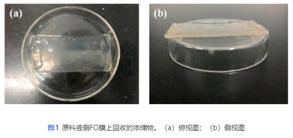 正滲透濃縮過程中原料液側的藻酸鈉(SA)與驅動液側反向擴散的Ca2+相互吸引并結合,在原料液側FO膜上形成濃縮物,如圖1所示。該濃縮產(chǎn)物與SA有差異,結果如下: