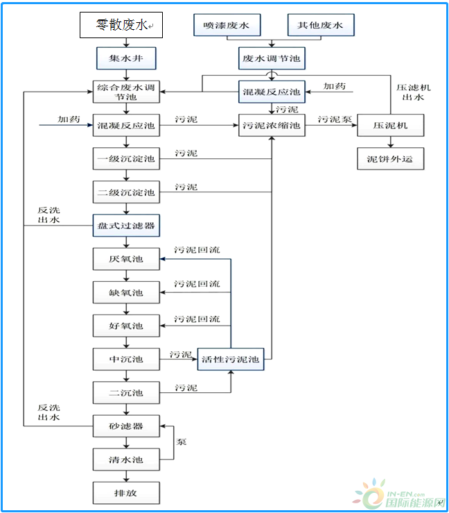 目前,國內(nèi)現(xiàn)行的集中式工業(yè)廢水處理工藝如下: