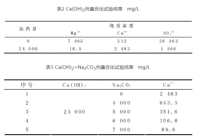 在一組燒杯中分別加入1L實驗水樣,并分別加入不同量的Ca(OH)2。以200r/min的速度攪拌60min,靜置60min,過濾上清液進行水質分析。Mg2+的物質濃度最低時Ca(OH)2的加藥量即為最佳加藥量。