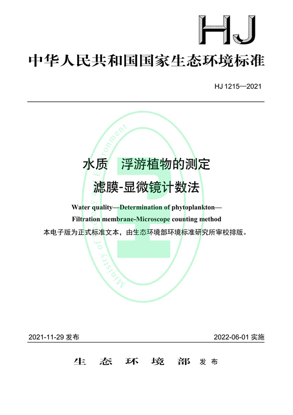 為貫徹《中華人民共和國環(huán)境保護法》《中華人民共和國水污染防治法》,防治生態(tài)環(huán)境污染,改善生態(tài)環(huán)境質(zhì)量,規(guī)范水中浮游植物的測定方法,生態(tài)環(huán)境部制定了《水質(zhì)浮游植物的測定 濾膜-顯微鏡計數(shù)法》(HJ 1215-2021)。本標準為首次發(fā)布,適用于地表水中浮游植物的測定。浮游植物是水生生物的組成部分,作為一個重要的營養(yǎng)級代表,是水生態(tài)監(jiān)測中不可缺少的內(nèi)容。浮游植物密度也是地表水水質(zhì)表征、水華預(yù)警等的重要指標之一。該標準作為地表水中浮游植物的監(jiān)測方法,可為開展水生態(tài)監(jiān)測,服務(wù)流域生態(tài)環(huán)境保護工作提供支撐。標準詳情如下:
