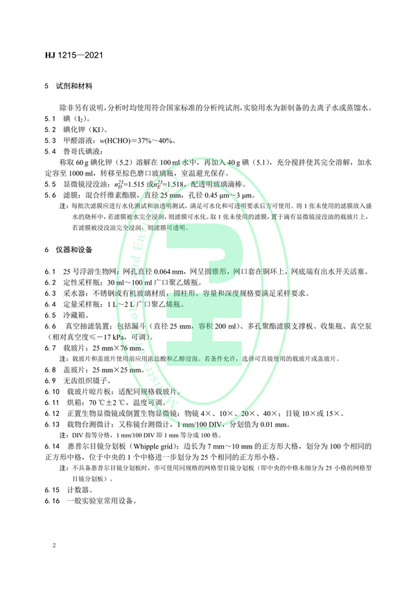 水質(zhì)浮游植物的測定濾膜-顯微鏡計數(shù)法