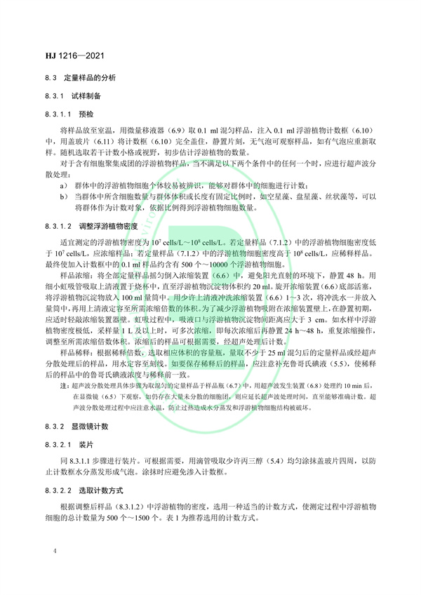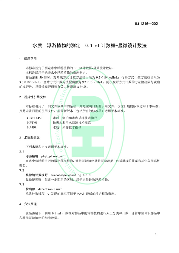 為貫徹《中華人民共和國環(huán)境保護(hù)法》《中華人民共和國水污染防治法》,防治生態(tài)環(huán)境污染,改善生態(tài)環(huán)境質(zhì)量,規(guī)范水中浮游植物的測定方法,生態(tài)環(huán)境部制定了《水質(zhì)浮游植物的測定0.1ml計數(shù)框-顯微鏡計數(shù)法》(HJ 1216-2021)。本標(biāo)準(zhǔn)為首次發(fā)布,適用于地表水中浮游植物的測定。浮游植物是水生生物的組成部分,作為一個重要的營養(yǎng)級代表,是水生態(tài)監(jiān)測中不可缺少的內(nèi)容。浮游植物密度也是地表水水質(zhì)表征、水華預(yù)警等的重要指標(biāo)之一。該標(biāo)準(zhǔn)作為地表水中浮游植物的監(jiān)測方法,可為開展水生態(tài)監(jiān)測,服務(wù)流域生態(tài)環(huán)境保護(hù)工作提供支撐。標(biāo)準(zhǔn)詳情如下: