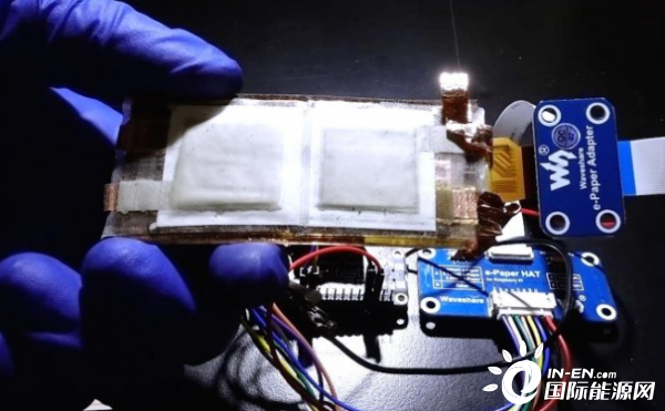這塊新型電池成功地為一個配備微型控制器和藍牙模塊的柔性顯示系統(tǒng)供電,其表現(xiàn)出來的電池性能也比市售的鋰離子紐扣電池好。
