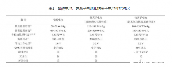 鋰離子電池和鉛酸電池,是目前市場(chǎng)上主流的二次電池技術(shù)。根據(jù)中關(guān)村儲(chǔ)能產(chǎn)業(yè)技術(shù)聯(lián)盟整理的數(shù)據(jù),2019年我國(guó)電化學(xué)儲(chǔ)能新裝機(jī)技術(shù)分布中,鋰離子電池占比70.7%,鉛酸電池占比27.2%,剩余為液流電池、超級(jí)電容器、鈉硫電池等。表1中列出了鋰離子電池、鉛酸電池以及鈉離子電池的常見的技術(shù)指標(biāo),所涉及的值均基于單體電芯。誕生于19世紀(jì)的鉛酸電池是一種技術(shù)成熟的二次電池,廣泛應(yīng)用于生活、軍事的諸多領(lǐng)域,包括電動(dòng)自行車動(dòng)力電源、汽車啟動(dòng)電源、通訊基站應(yīng)急電源等。經(jīng)過(guò)一百多年的技術(shù)更新,其能量密度、使用壽命、成本等已經(jīng)到了瓶頸。雖然鉛酸電池與鋰離子相比,在能量密度、循環(huán)壽命、環(huán)境影響等方面存在明顯劣勢(shì),但其售價(jià)較低且有回收價(jià)值,使鉛酸電池仍然具有可觀的市場(chǎng)占有率。鋰離子電池有很多體系,根據(jù)正極可以分為鈷酸鋰、三元、磷酸鐵鋰、錳酸鋰等體系,根據(jù)負(fù)極可以分為石墨、鈦酸鋰等。磷酸鐵鋰/石墨體系具有較低的成本、較高的能量密度、較好的安全性以及超長(zhǎng)的循環(huán)壽命,和鈉離子電池在高性價(jià)比、高安全性等方面的定位較為相似,故選擇該體系進(jìn)行對(duì)比。