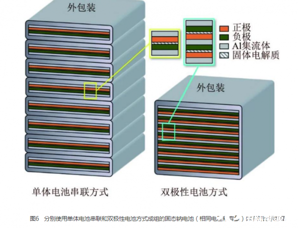 (3)開發(fā)固態(tài)電池技術(shù),著重開發(fā)新型鈉離子固體電解質(zhì),進(jìn)一步提高鈉離子電導(dǎo)率,并解決固固界面難題;引入雙極性電池技術(shù),進(jìn)一步提高能量密度(圖6);