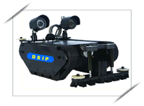 管道清洗機器人,高20cm,寬30cm,手動升降臂,可通過更換不同大小的毛刷清洗不同管徑的風管;同時,通過更換升降臂前端傳動機構,改變毛刷旋轉方式,可以清洗方形管道和圓形管道;毛刷通過氣動馬達帶動,氣動馬達的好處是體積小,重量輕,功率大,并且可以長時間工作。機器人載有廣角攝像頭,信號經電纜傳至監(jiān)視器,在管外可以監(jiān)控整個清洗過程,并操縱機器人避開障礙物。升降臂連同毛刷作為一個模塊可以整體拆卸下來,這樣清洗機器人便成為一部靈活的勘測機器人,配備不同的探頭,可以測量管內風速、溫度、濕度、粉塵濃度等參數(shù)。機器人通過控制箱遠程控制,改變行進速度、方向、毛刷轉速、燈光亮度,履帶式行進機構能夠保障輕松越過障礙物,不致傾斜。